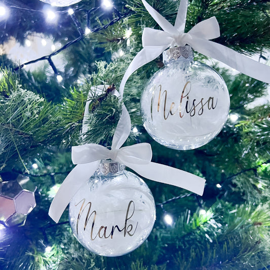 Christmas Ornament - SCRIPT Name Christmas Bauble W/ Preserved Dried Flowers