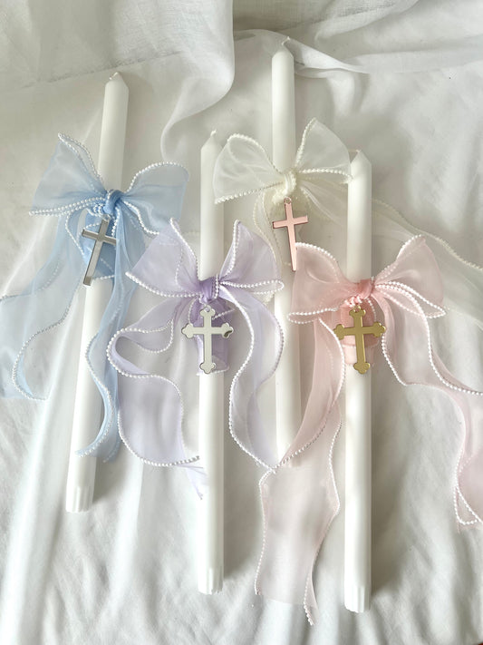 Palm Sunday, Easter Candle - With Pearl Ribbon