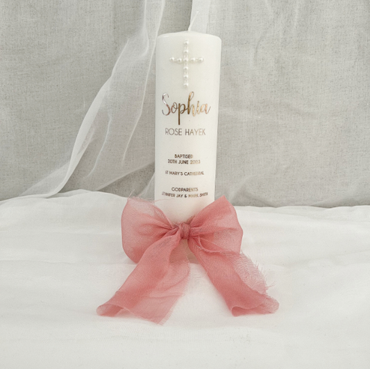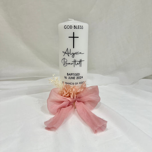 Christening Baptism Candle - Script Style